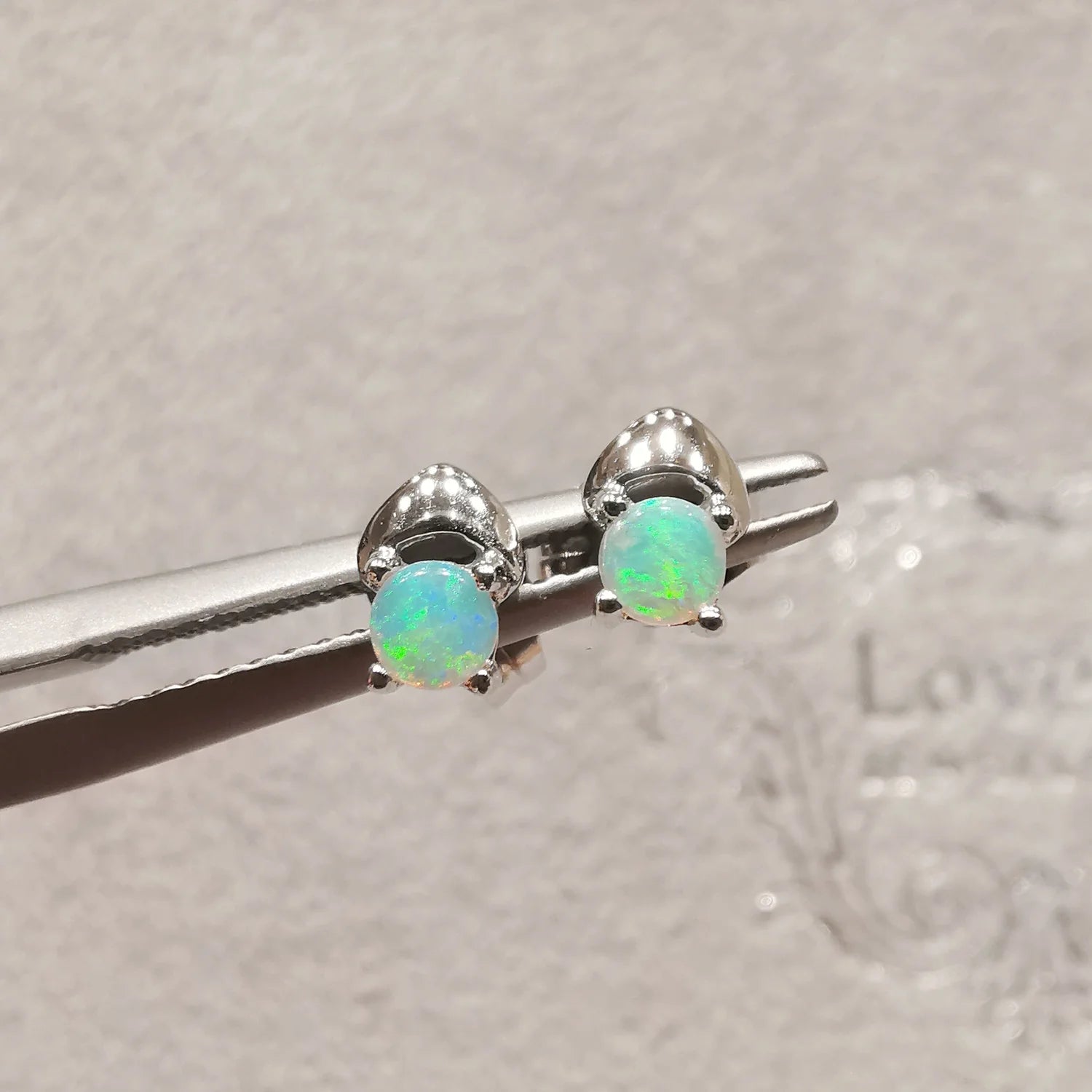 18K Cupid's Bow White Opal Stud Earrings (White Gold)
