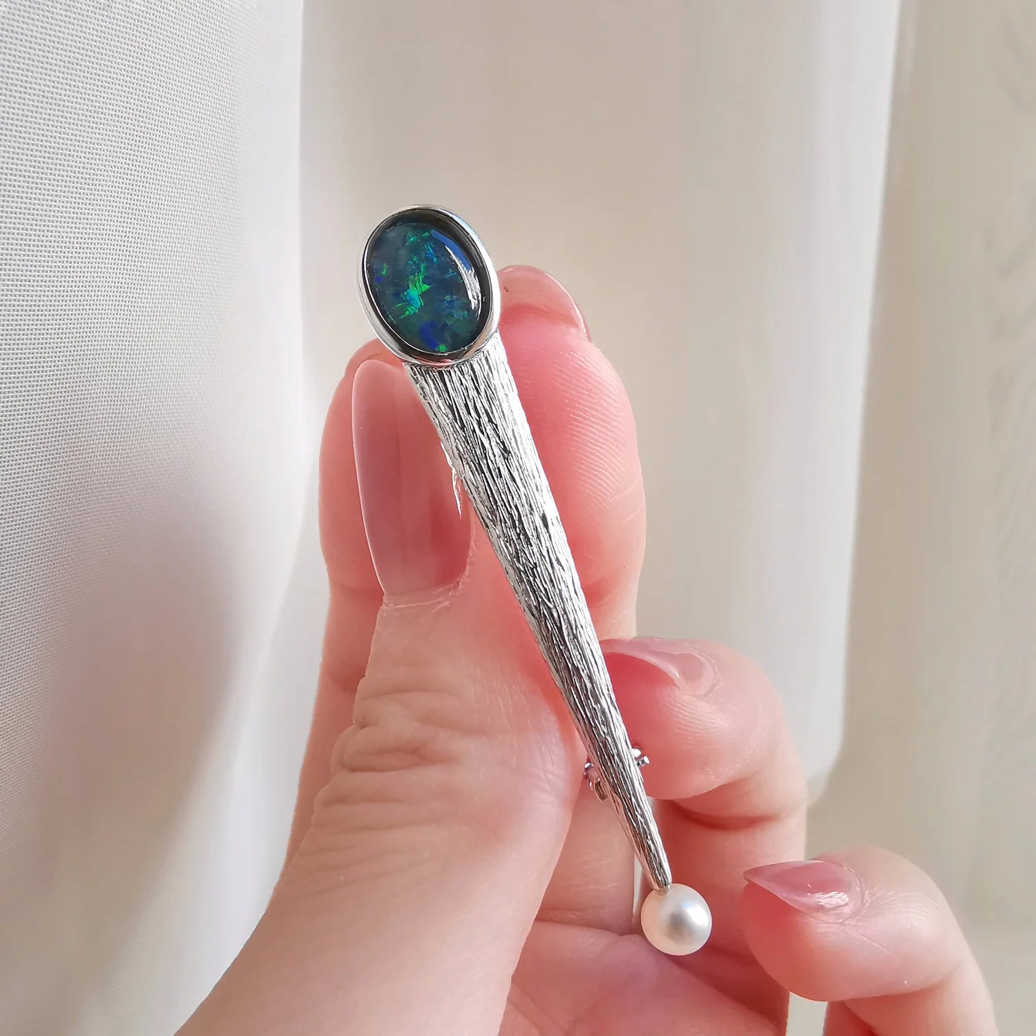 Sterling Silver Ezra Triplet Opal Brooch with Pearl