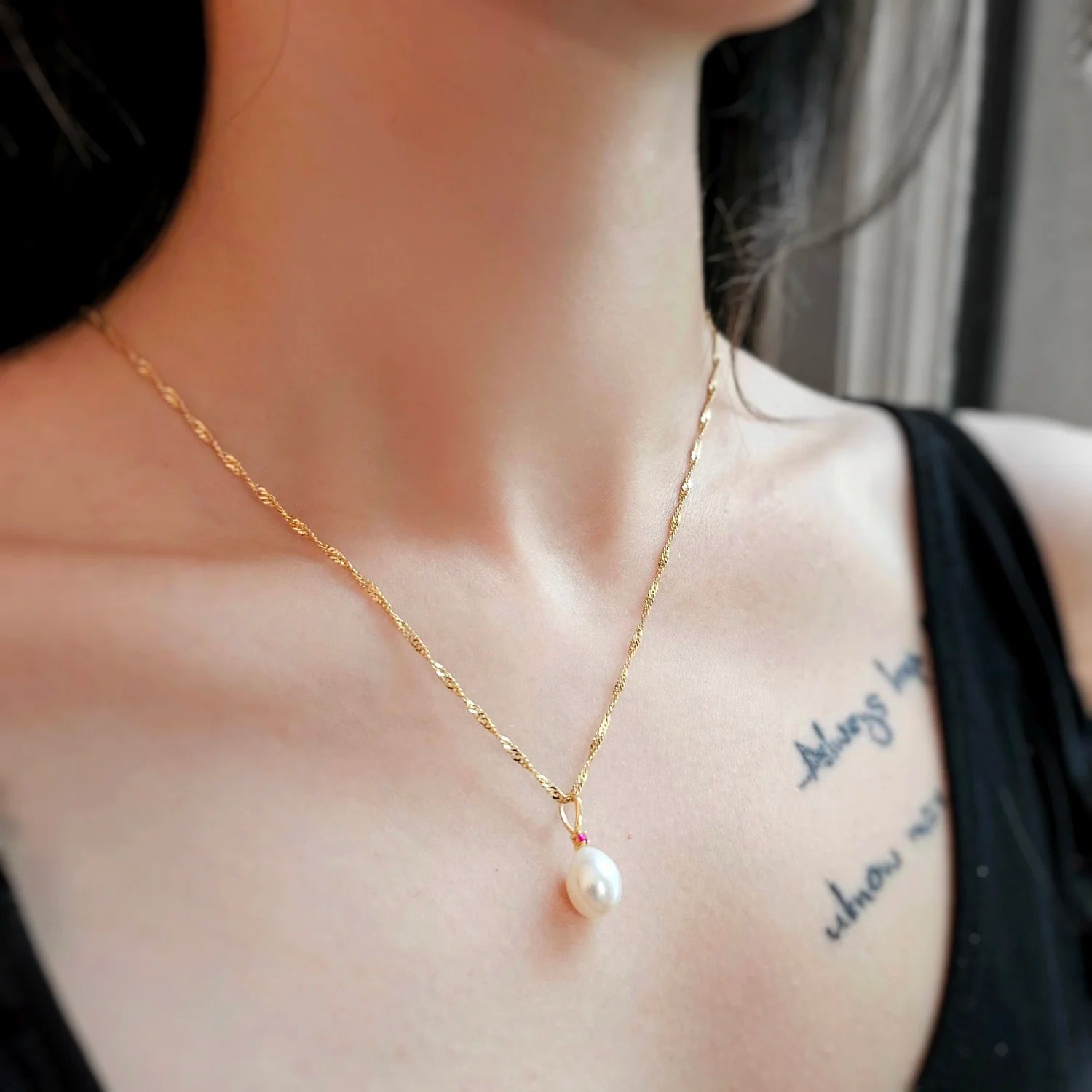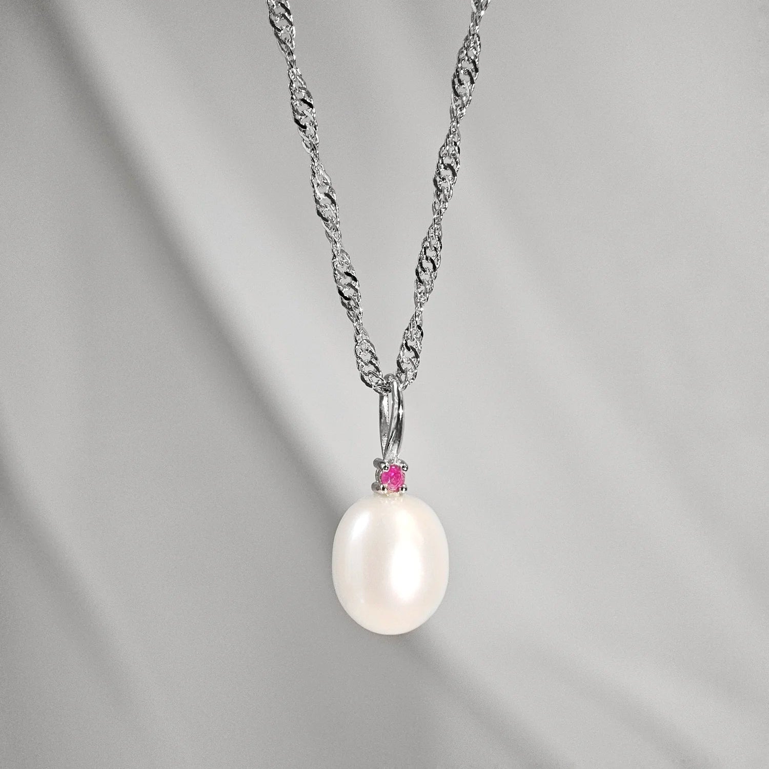 Sterling Silver Freshwater Pearl with Natural Ruby Pendant