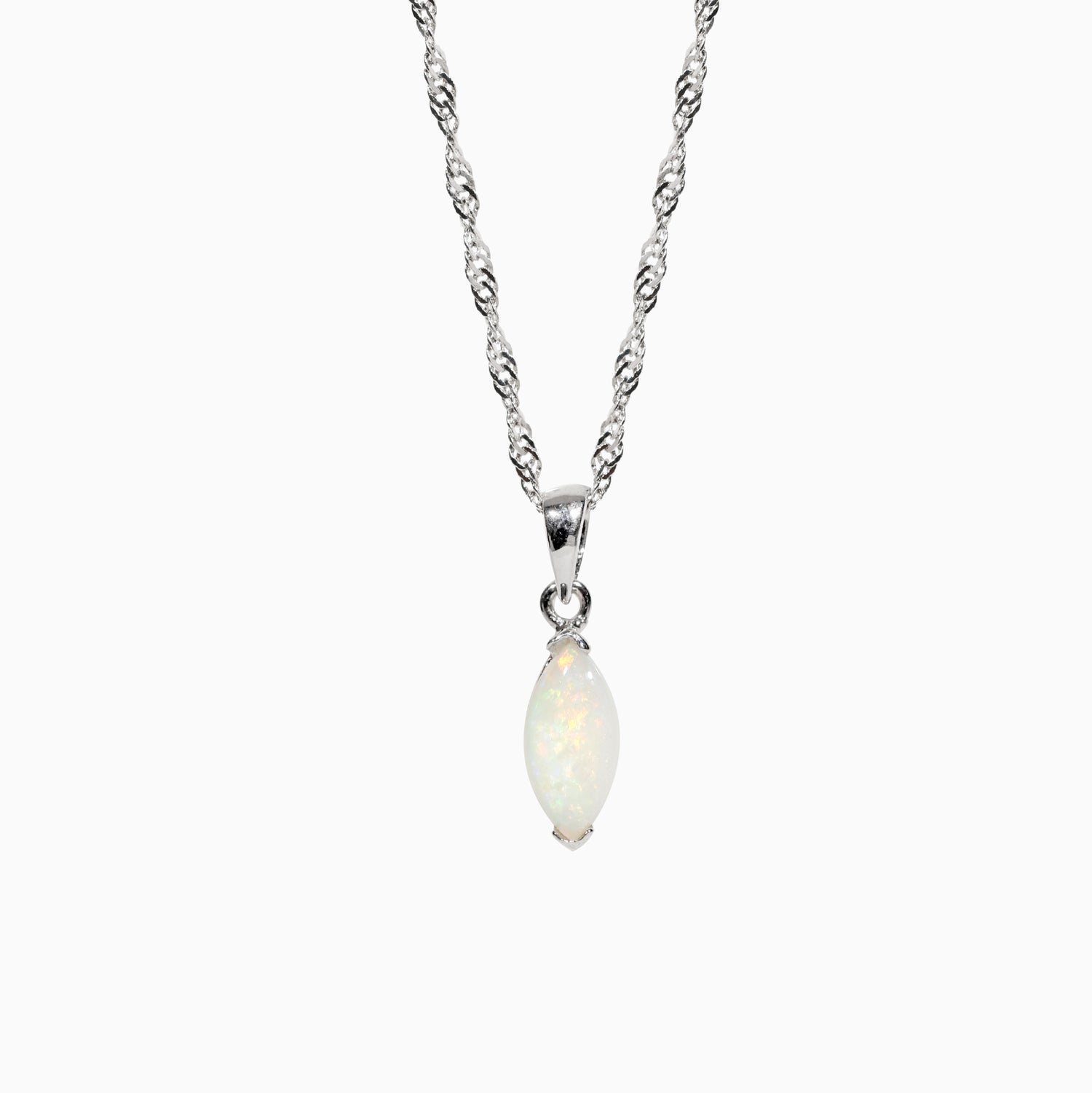 Sterling Silver Marquise Solid White Opal Pendant