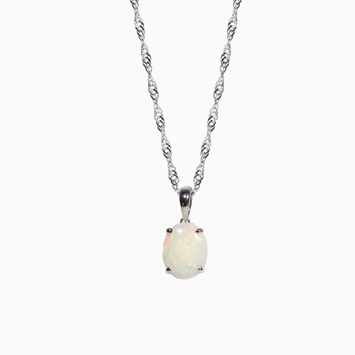 Sterling Silver Solid White Opal Pendant (Medium)